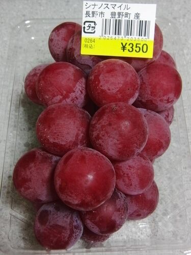 アグリながぬまで買ってきました。 シナノスマイル。ぶどうです。 巨峰の遠い親戚みたいな品種です。長野県須坂市生まれ。食べてみると、やっぱり巨峰になんとなく似て いますね。種なしのシナノスマイルもあるようですが、私が購入したこのものは種ありでし…