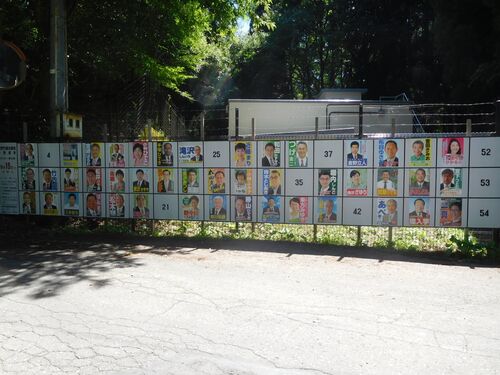 今日のお昼頃は、裾花大橋の手前から小田切地区を通って安茂里小市まで出るという ドライブルートだったのですが、途中で選挙の看板を見かけました。 長野市議会選挙は、今日が告示日。来週日曜が投票日です。 しかし、この看板(掲示板)のある場所、相当山…