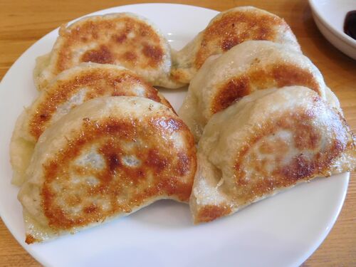 小布施にある、萬福さんに行ってきました。 焼餃子定食(800円)。この可愛らしいフォルム。 ご飯とお味噌汁が付きます。焼餃子のみ(6ケ600円)もあります。 味噌汁はインスタントの生タイプをお湯で溶いていました(笑)。 でもこれはこれでおいし…