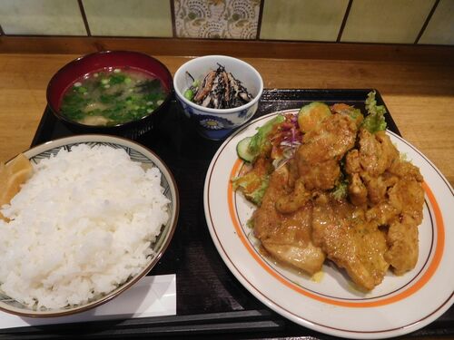 食堂スワロウさんに行ってきました。 タンドリーチキン定食(ご飯もおかずも大盛り)(920円)。 暑い時期にカレー風味の鶏肉の定食は良いですね。蒸し暑かった。 ひじきとれんこんとにんじんと枝豆の白和え。優しい味付け。 今日は並んでから食べられる…