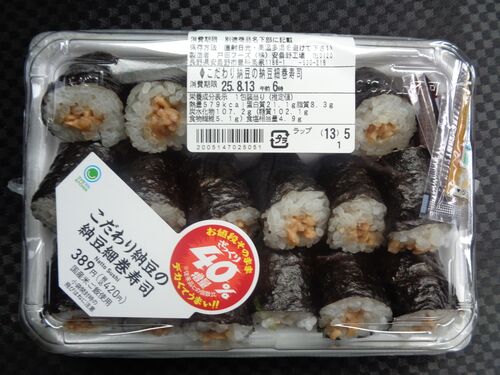 ファミマの40%増量シリーズ2週目を購入してきました。 こだわり納豆の納豆細巻寿司(420円)。 通常品が12本入りに対して、増量で17本。40%増量なら4.8本なので ほぼ40%増量であってる。変に味にこだわったのが逆に裏目。人によっては …