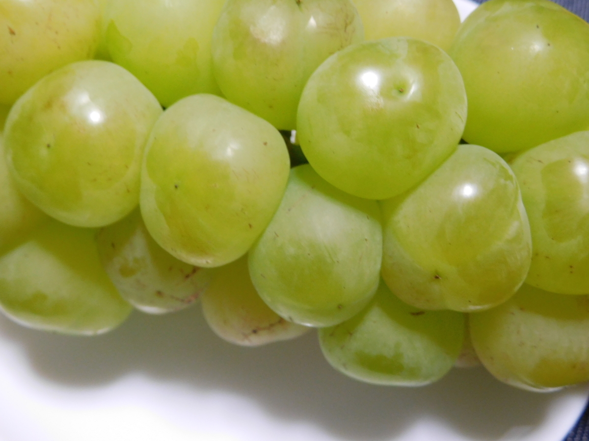 2022-10-24 瀬戸ジャイアンツ くだものだもの 上松の産直所で購入しました。 瀬戸ジャイアンツ(700円)。 1989年、岡山県生まれ。「グザルカラ」と「ネオ・マスカット」の かけ合わせ。私が買ったこのぶどうは、甘さがイマイチ。 ハズレだったのかも。これじゃあ「薄味のシャインマスカット」。 別名「桃太郎ぶどう」だそうですが、これは桃太郎ぶどう生産組合の 登録商標なので一般的には瀬戸ジャイアンツの名前で売られているそうです。 まあ色々なぶどうを食べてみるのも楽しい。