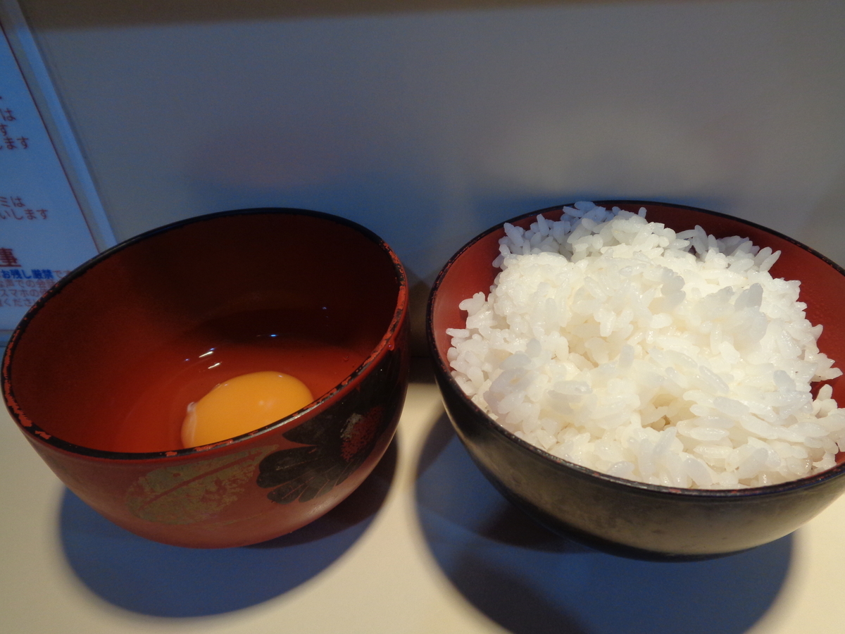 汁なしには生卵が標準でついてくるので小ライス(100円)をつければ