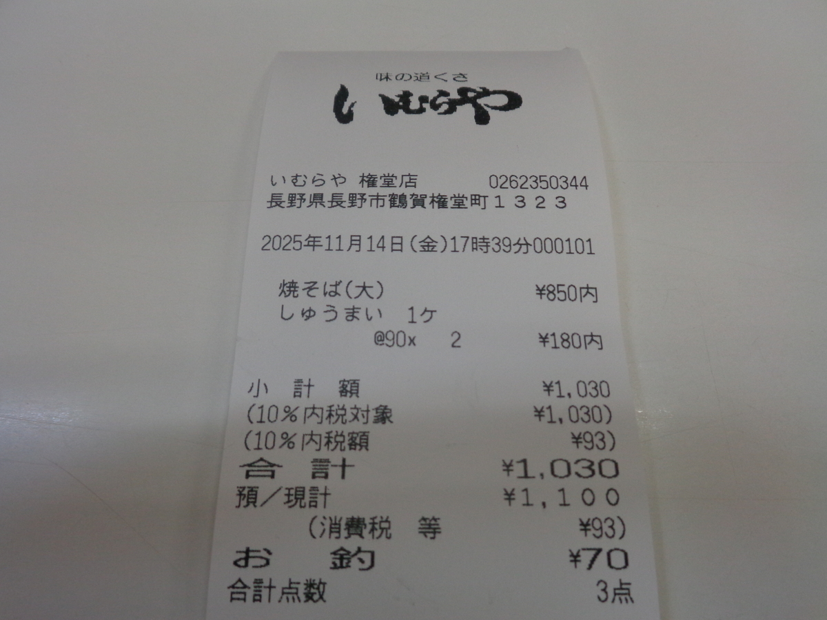 2025-11-14 いむらや 焼そば(大) ラーメン・麺類など 長野県内の飲食店 いむらや権堂店さんに行ってきました。 焼そば(大)+しゅうまい2個(1030円)。 しゅうまいは1個90円になりましたか。 長野市のソウルフードとも言われるいむらやの焼そば。 ただし甘い餡なので好き嫌いはわかれますし、初心者だと微妙な印象かも。 食べ慣れればハマる人はハマる。卓上にはお酢・ソース・醤油・からし酢。 ラーメンもあるんです。しかし焼そばをスルーするという選択肢はない。 ごちそうさまでした。 すぐ近くにある夢を語れ長野さんでは、また限定メニュー出していました。 右下にあるポスター、謎の絵師がいますよね。豚豚拍子さんでも見かける。 天然生活 いかチップ(200g) おつまみ