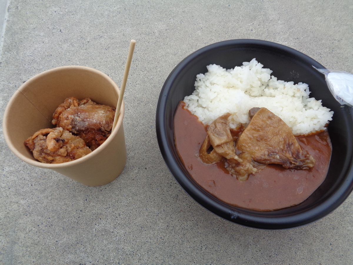牛すじカレー(1000円)と唐揚げ(500円)を購入。