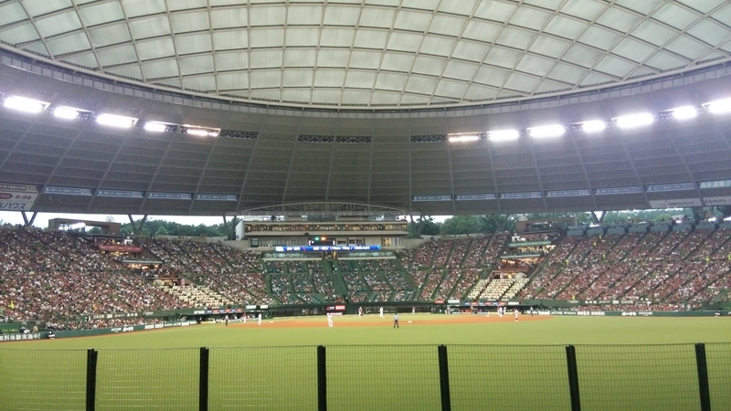2017-08-15 あくまでも野球を見に来た スポーツいろいろ 神宮が中止なので西武ドームに来ました 西武ドームはほぼ満員 楽天側外野自由席しかなかった 西武ライオンズの限定赤いユニフォームと楽天のクリムゾンカラーで ドーム内は赤一色 外野自由席で1800円でした